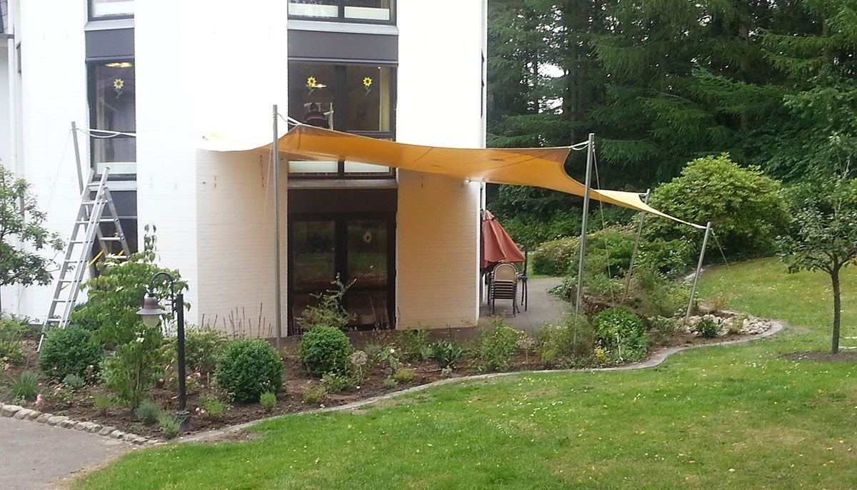 Kita: Für empfindliche Kinderhaut bietet ein Sonnensegel aus hochwertigem Persenningtuch den perfekten Schutz beim spielen.